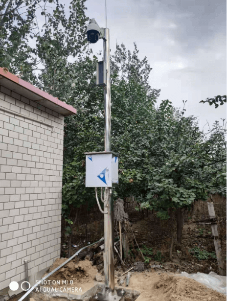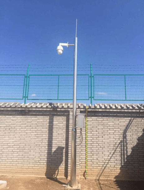 施工現(xiàn)場,監(jiān)控桿高度4.5米,材質(zhì)為純304不銹鋼,壁厚4mm。